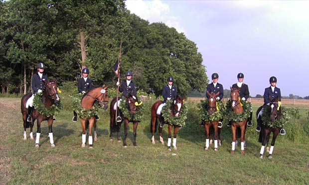 beide einen 0-Fehlerritt im Gelände vor. In der Abteilungsdressur überzeugten die Ponyreiter durch ihr gleichmäßiges Erscheinungsbild und waren von den 6 anderen Pferdemannschaften nicht zu schlagen. Vorgestellt wurde die Abteilung von Astrid Handke-Springer.
