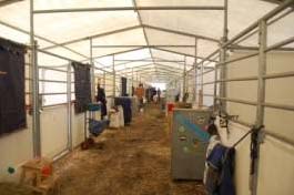 Stallzelte, schon mehrere Reihen Wohnwagen und