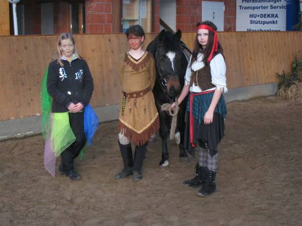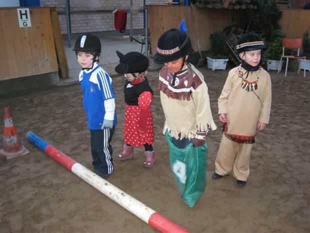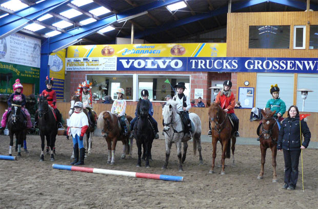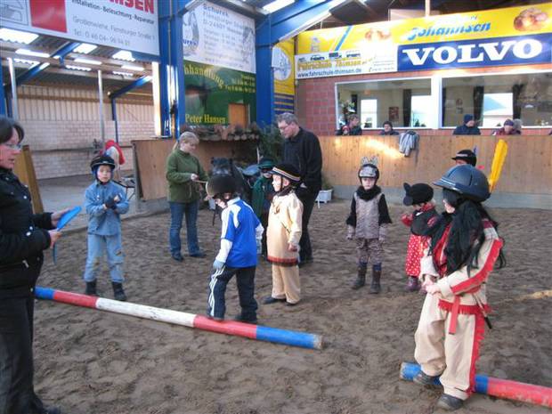 Spiel und Spaß beim Faschingsreiten in Großenwiehe Das war wieder ein toller Nachmittag, so der Kommentar der 20 Kinder zwischen 4 und 12 Jahren. Im Rahmen der Jugendarbeit des Reit- und Fahrvereines Großenwiehe hatte Jugendwartin Astrid Handke-Springer zu einem Kostüm- und Faschingsreiten in die Reithalle nach Großenwiehe eingeladen. Organisatorin dieses Spektakels war Simone Buchholz. 20 Teilnehmer, verkleidet als Cowboy und Indianer, Teufel, Katze und Bonbon, kamen mit ihren Eltern und ihren Ponys und erlebten einen lustigen Nachmittag, denn Spiel und Spaß war das Motto. Unterstützt von Daja Cardell, Antonia Paulsen und Lara Hagemann wurden die Lütten Reiter in 2 Gruppen eingeteilt. Große Gaudi fanden die Jungen und Mädchen dann beim Kartoffel- und Staffettenreiten. Auch beim Sackhüpfen gab es viel Gelächter. Die Geschicklichkeitsspiele ritten die Teilnehmer überwiegen im Schritt und Trab, um nichtvorhersehbare Ausbrüche der Ponys zu vermeiden. Gewinner waren alle, denn alle haben ihr Bestes gegeben und wurden von ihren Familien und Freunden angefeuert. Dabei sein und mitmachen ist für alle das Größte. Nach dem die Ponys versorgt waren, stärkte man sich bei Kaffee, Säften, Kuchen und Süßigkeiten. Jugendwartin Astrid Handke-Springer dankte der Organisatorin, den Helfern und allen Mitwirkenden. Sie zeigte sich erfreut über die gute Teilnahme. Vorsitzender Holger Sönnichsen lobte die Eltern und Großeltern für ihr Engagement. Ohne sie würde die Jugendarbeit nicht in diesem Rahmen stattfinden können. Lorenz Egon Jürgensen