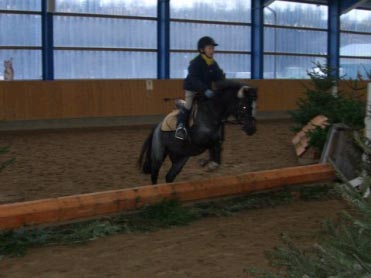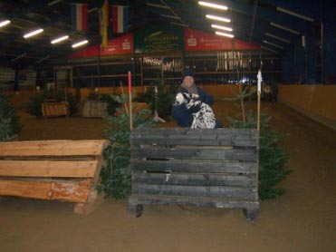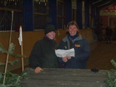 Indoor-Training am 10.-11.2.2007 Am letzten Wochenende habe ich zum 3. Mal in unserer großen Vereinshalle ein Indoortraining gegeben. Auch in diesem Jahr gab es unglaublich viele Anmeldungen und ich hatte vor allem am Samstag einen sehr straffen Zeitplan einzuhalten. Da zu 70% Reiter mit E bis A Niveau gemeldet waren, haben wir uns entschieden nicht so viele schwere, hohe Sprünge in diesem Jahr in die Halle zu nehmen. Donnerstagabend wurden dann 20 neue transportable Hindernisse in die Halle geschafft, Peter dirigierte sie an die richtigen Stellen und viele fleißige Vereinsmitglieder halfen beim Verschönern. Es wurden Hecken gestopft, gesammelte Tannenbäume (zum Teil noch mit Lametta) als Fänge an die Sprünge getüdelt, geharkt, gefegt und hinterher zusammen ein Bierchen getrunken. Es entstanden schöne Linien, die sowohl E- als auch A und L-Anforderungen gerecht wurden. Freitag Vormittag fuhren Piet, Anneke, Marika und ich erstmal los zum