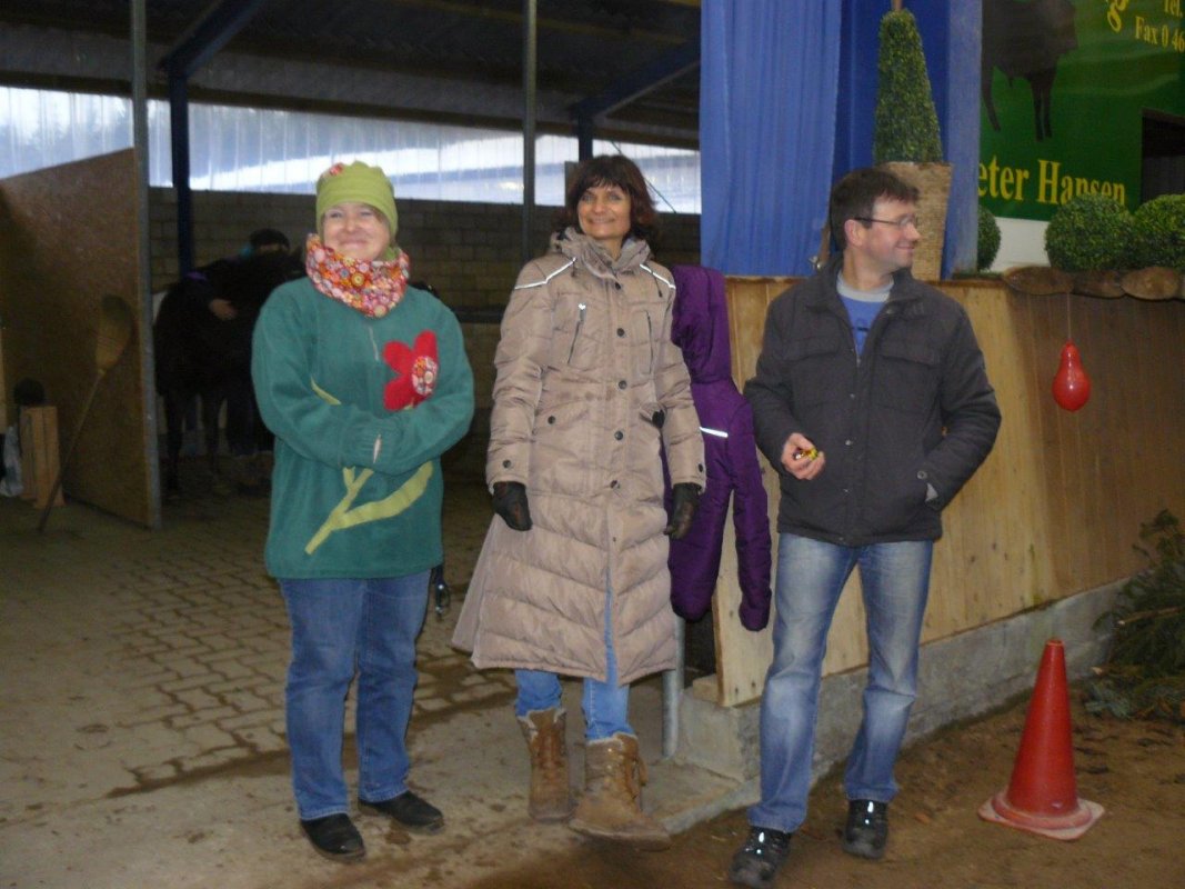 ©Jürgensen. Die kostümierten Reiter und Pferde. Mit ihren Helfern. Rechts im Bild die Jugendspreche- rinnen von rechts, Merrit Feddersen und Sina Thomsen. Fünfte von links = Jugendwartin Tanja Cardel. Die drei anderen Bilder waren nicht auf dem Gruppenfoto.